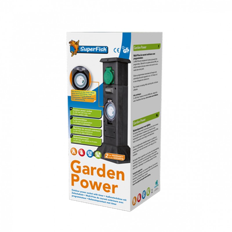 Multiprise de courant extérieure avec 3 prises et 8 mètres de câble et programmateur intégré. Avec la minuterie, vous pouvez allumer et éteindre automatiquement à une heure prédéfinie. Idéal pour économiser de l'énergie sur l'UV, la pompe à air et aussi prolonger la durée de vie de vos lampes.|