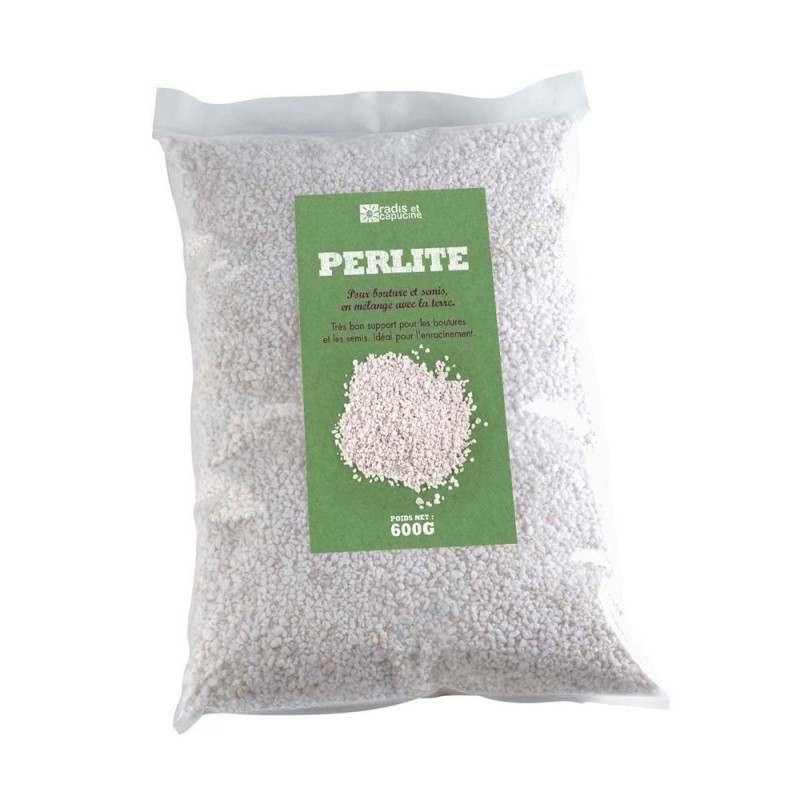 Idéale pour alléger vos substrats de culture, la perlite est facile d'utilisation, sans odeur, ne salit pas les mains et les pots. En horticulture et pour le jardinage, la perlite est utilisée pour alléger les terreaux souvent trop compacts. Elle est particulièrement indiquée pour la production d'un chevelu racinaire abondant et homogène: c'est pourquoi on l'emploie pour les semis et le bouturage à raison de 25 %, en volume, dans le support de culture. Sa très grande porosité (96 à 97 %) lui permet de retenir l'eau qui s'infiltre au coeur de ses grains par capillarité