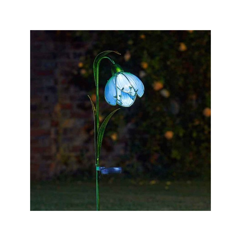 Balise décorative Perce-Neige à planter dans un parterre de fleurs. Décorative de jour comme de nuit. Se charge au soleil et s'allume automatiquement à la tombée de la nuit. Verre peint à la main et construction en métal robuste.