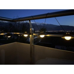 Cette guirlande solaire avec abat-jours renferme une puissance d’éclairage redoutable. Elle peut soit fonctionner de manière autonome grâce à son panneau solaire, soit être branchée sur le réseau électrique grâce à l’adaptateur fourni.