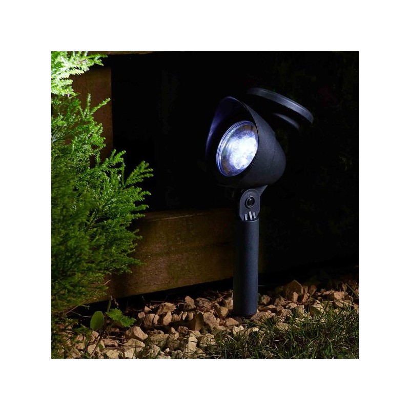 Spot solaire à planter le long des allées et bordures. Lumière directionnelle de 3 lumens, facile à ajuster. Se recharge au soleil et s'allume automatiquement la nuit. Plastique - 36.8 x 15 x 9 cm