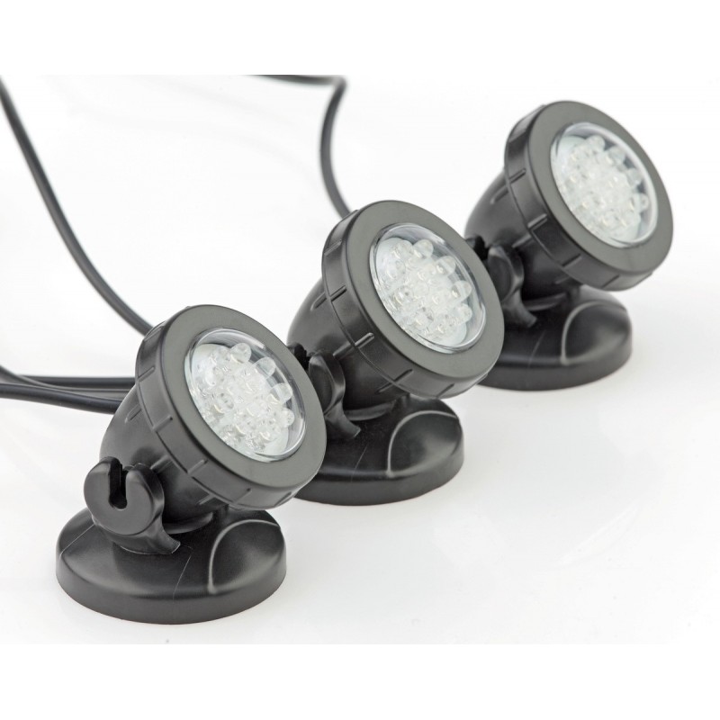 Ces 3 projecteurs à LED peuvent être utilisés en immersion ou hors de l'eau pour mettre en ambiance et en valeur les plantes du bassin. Caractéristiques techniques : Puissance : 1,5W Tension : 12V Matière : plastique