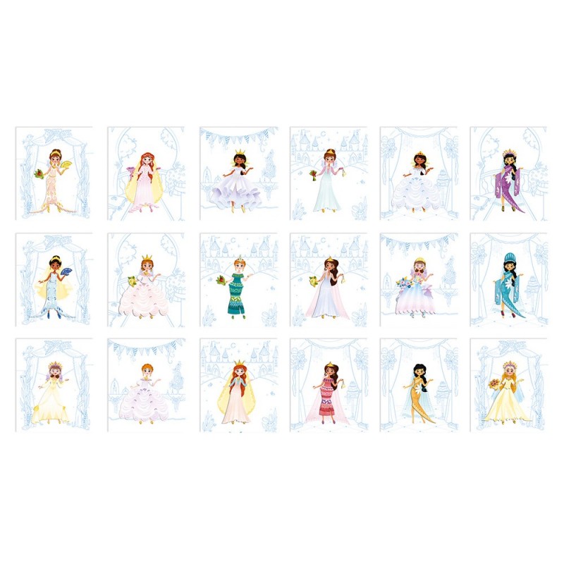 Carnet avec des jolies mariées à habiller grâce à des stickers. Un format pratique qui permet d'emmener son carnet partout.