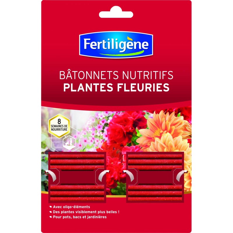 Les bâtonnets d'engrais plantes fleuries Fertiligène permettent d'obtenir de magnifiques plantes fleuries au feuillage et à la floraison plus abondante. Action prolongée 8 semaines.