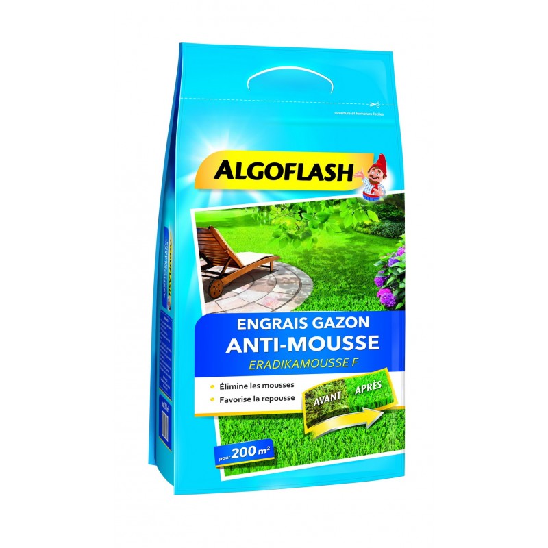 Fertilisant + Anti-Mousse. Granulés. Elimine les mousses en une seule application.