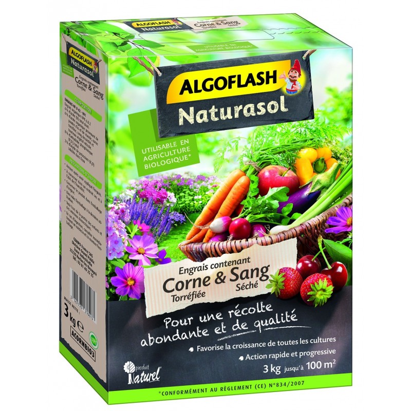 Engrais poudre. Recommandé pour toutes les cultures fruitières et potagères. ornementales et florales. Pour des plantes saines et vigoureuses. Label Produit naturel. Utilisable en Agriculture Biologique*.