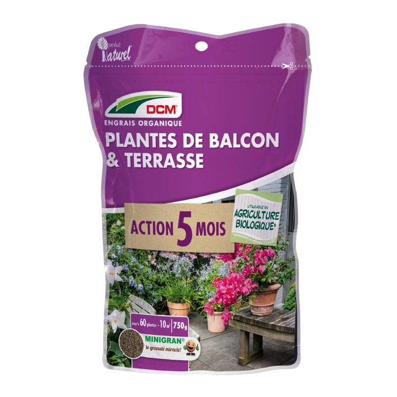 DCM Engrais organique PLANTES DE BALCON&TERRASSE 10m2 UAB 750G