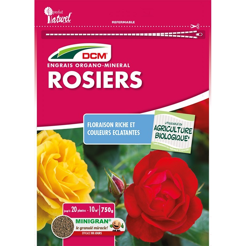 ? NPK 6-4-10 + 2 MgO ? Pour rosiers et fleurs en pots et pleine terre ? Pour une floraison abondante aux couleurs éclatantes des rosiers. fleurs. arbustes fleuris. plantes vivaces? ? Riche en potasse ? Utilisable en agriculture biologique ? En MINIGRAN ®