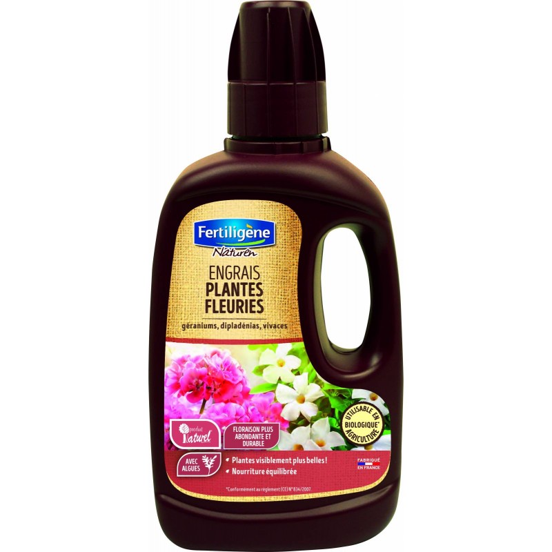 L'engrais liquide plantes fleuries Fertiligène Naturen est formulé à base d'algues marines et apporte une nourriture complète aux plantes (dahlias. géraniums. dipladénias. pétunias. surfinias...) pour garantir la croissance et une floraison plus abondante et durable. Pour des plantes fleuries visiblement plus belles ! Utilisable en agriculture biologique*.