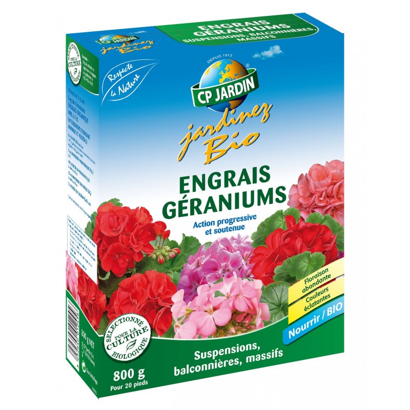 Engrais 100% organique à action progressive et soutenue Pour géraniums et pélargoniums
