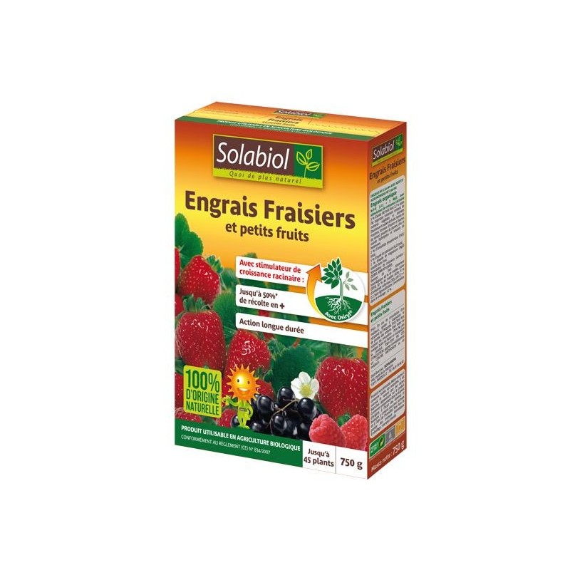 Adapté aux besoins des fraisiers et autres arbustes à petits fruits (framboisiers. groseilliers. myrtilliers. etc.). Améliore le sol et nourrit durablement les cultures.