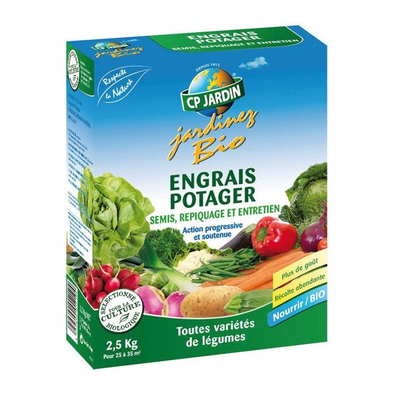 MENTIONS OBLIGATOIRES: COMPOSITION: Engrais organo-minéral NFU 42-001-NPK 3-6-9 + 3MgO S'utilise pour les légumes en fumure de fond et d'entretien Période d'emploi: - Apport possible: janvier - décembre - Apport conseillé: février à novembre Utilisable en agriculture biologique Ecofert Lire et respecter les précautions et doses d'emploi Contenu: 2,5 kg Pour 25 à 35 m² Référence: 1210