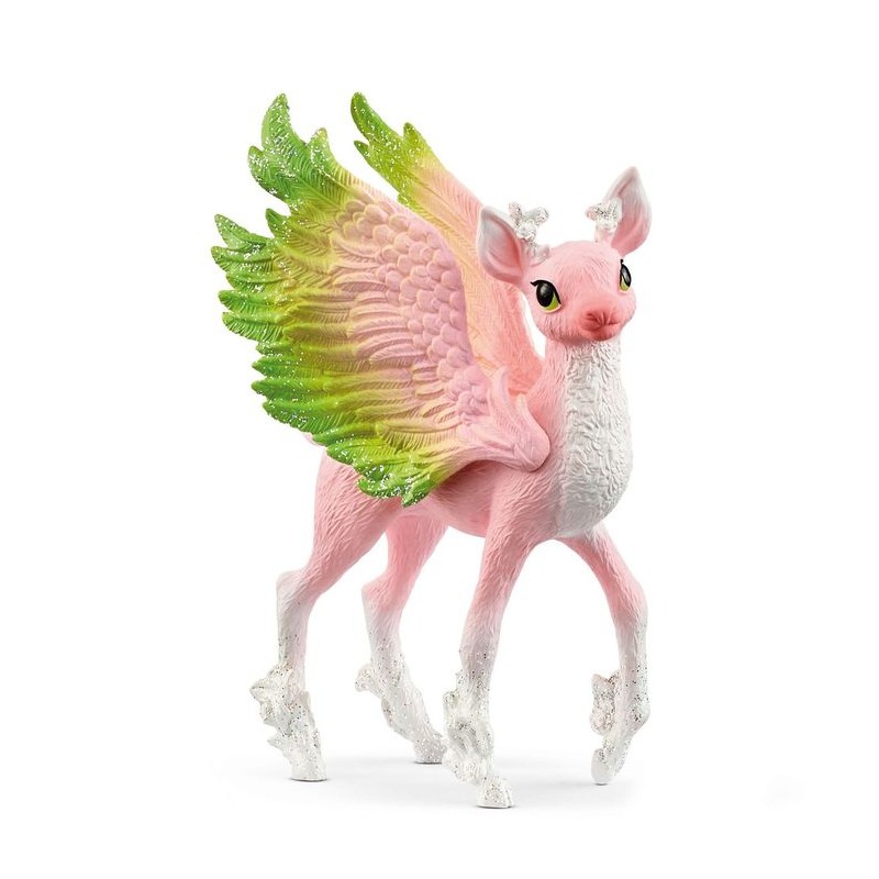 Le Bébé Cerf Magique regarde au loin à travers ses grands yeux brillants, l’air rêveur. Mais à quoi peut-il bien penser ? Il lève son adorable museau rose vers le ciel et déploie ses ailes merveilleuses. À vrai dire, pour pouvoir voler, il aurait encore besoin de s’entraîner un peu mais il a sûrement bien plus envie de jouer. Dans la forêt, il gratte déjà le sol avec ses petits sabots et se met au trot. Qui a envie de l’accompagner ?|