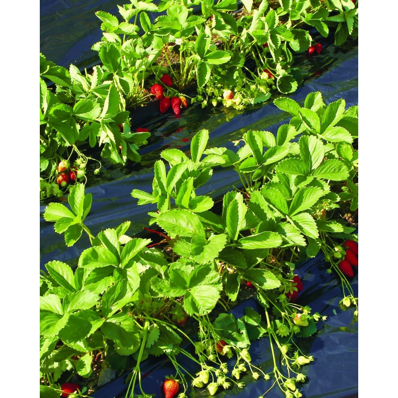 En polyéthylène 50% recyclé.Coloris noir.Épaisseur 60 µ. Film de paillage spécial fraises utilisant 50% de polyéthylène recyclé.Couleur noire. microperforé.Limite les arrosages et évite la pousse des mauvaises herbes.