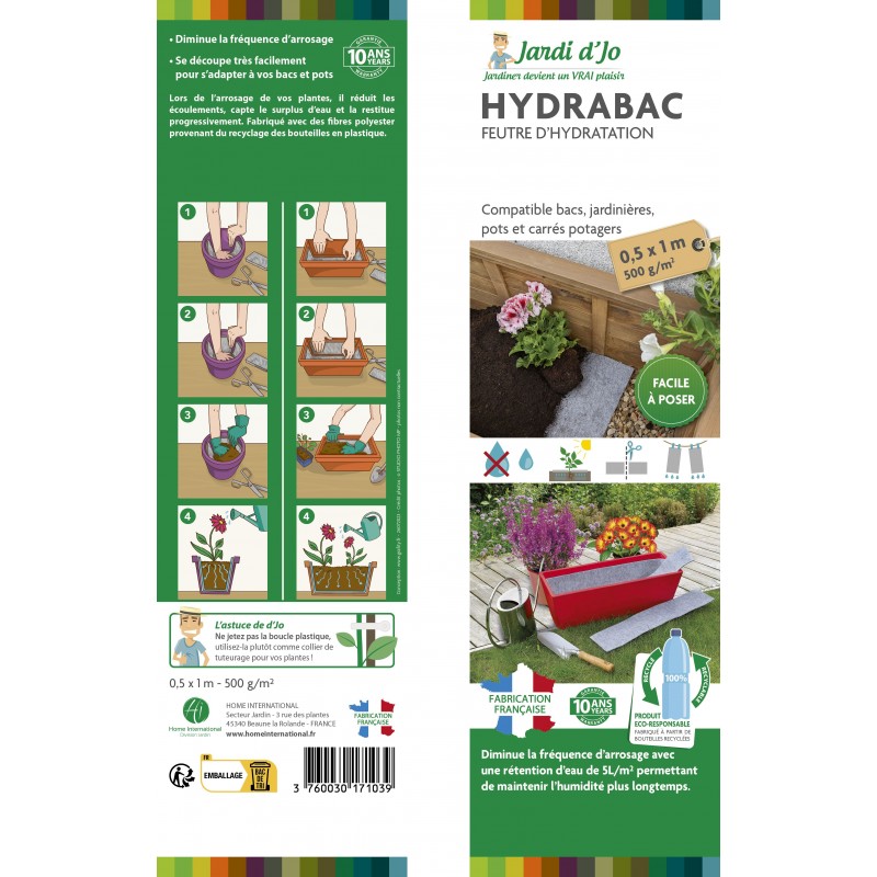 Fabriqué en France à partir de matériaux recyclés, l’Hydrabac est une solution respectueuse de l’environnement pour un jardinage durable et efficace.|