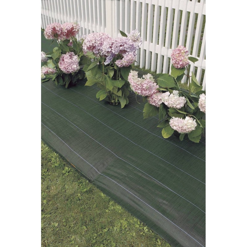 Toile tissée en polypropylène vert / noir et marron / noir.90 g/m².Bandes horizontales de plantation vertes tous les 15 cm.