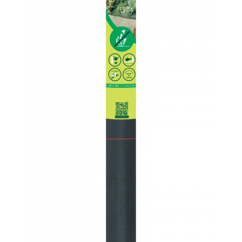 Toile tissee en polypropylene vert / noir. Qualite lourde : 120 g/m. Coloris vert avec bandes brunes horizontales tous les 25 cm.