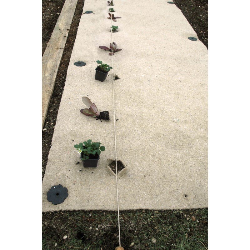 100% chanvre (matière française). Réduit les arrosages en absorbant l'eau et en minimisant l'évaporation. Limite l'entretien du sol et évite l'usage d'herbicides chimiques. Prévient l'érosion du sol et son écroûtage en favorisant la pénétration de l'eau. Protège du froid. Améliore la structure du sol et la fertilise par sa décomposition en humus.
