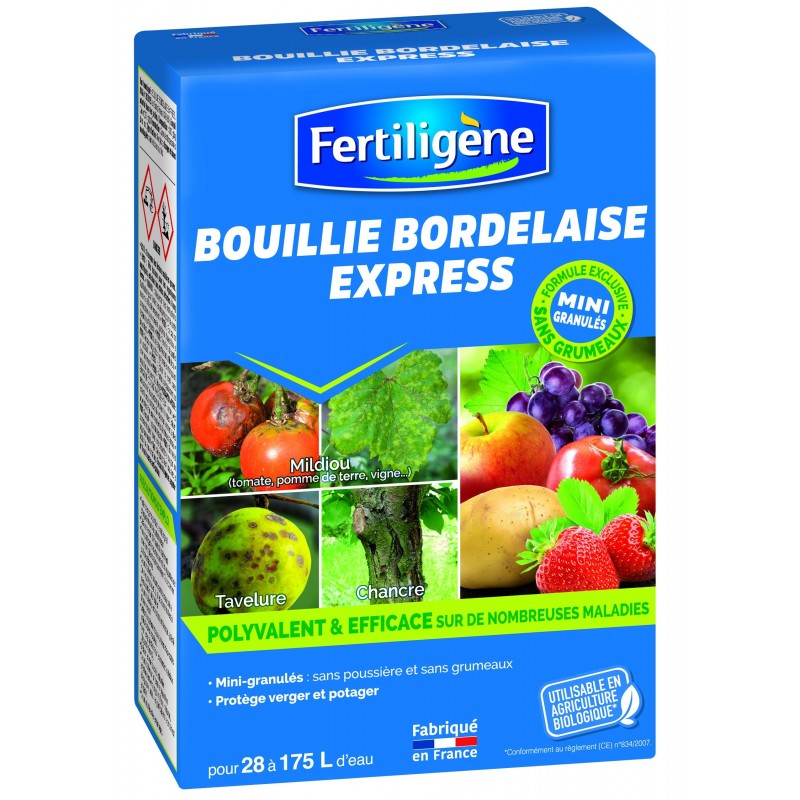 A base de cuivre. matière active d’origine minérale ce fongicide traditionnel et polyvalent combat efficacement de nombreuses maladies des arbres. fruits et légumes (tavelure. mildiou. chancre. bactériose. cloque...). Unique : Formule exclusive en mini-granulés dispersables dans l'eau : sans poussière. faciles à doser et à mélanger. plus de grumeaux dans le pulvérisateur ! Utilisable en Agriculture Biologique*.