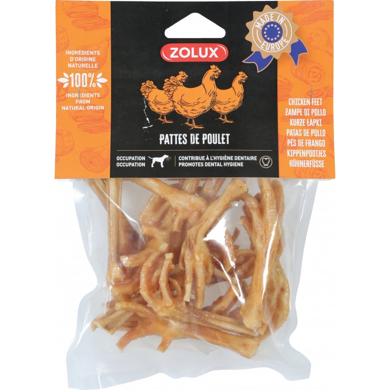 100% naturelles et source de protéines, les pattes de poulet sont la collation idéale pour une longue séance de mastication et un moyen très efficace de réduire les tensions de votre animal. C'est une aide idéale pour l'entretien de sa dentition. Grâce à sa texture rigide et à ses aspérités, votre chien pourra facilement nettoyer ses dents et ses gencives.|