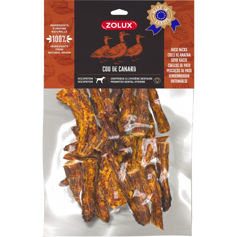 100% naturel et très appétent, le cou de canard est la collation idéale pour une longue séance de mastication et un moyen très efficace de réduire les tensions de votre animal. C'est une aide idéale pour l'entretien de sa dentition.|
