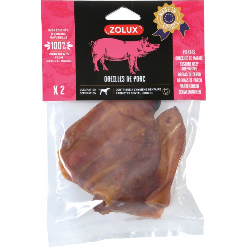 La texture épaisse et dure des oreilles de porc contribue à l’hygiène dentaire de votre chien, en participant efficacement au nettoyage des dents et des gencives. Leur action aide à garder des dents blanches et une haleine fraîche.|
