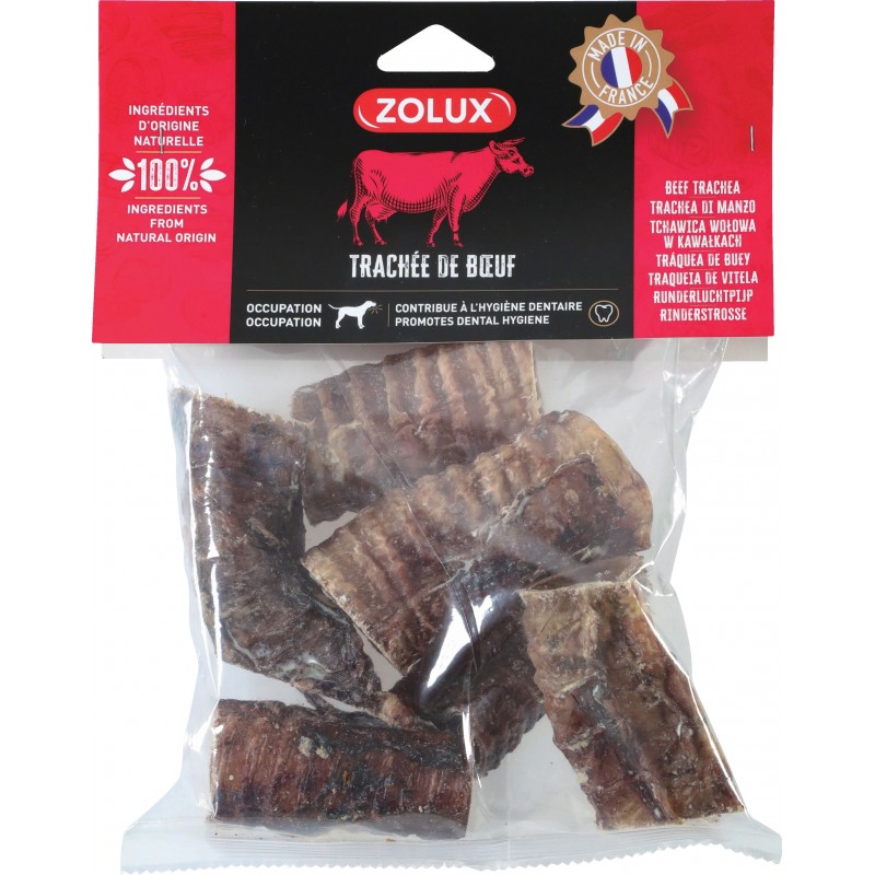 100% naturelle, la trachée de boeuf offre du plaisir et de la saveur à chaque bouchée. Grâce à sa texture cartilagineuse et à ses aspérités en forme d'anneaux, les chiens bénéficient d'un frottement sur leurs dents et leurs gencives. La plaque dentaire est ainsi limitée et les résidus alimentaires éliminés. Une bouche saine permet aussi de conserver une haleine plus fraîche pour votre chien.|