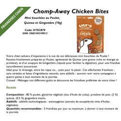 Recette fraichement préparée au Poulet, agrémenté de Quinoa (une graine riche en énergie et protéine), et d’un soupçon de Gingembre (réputé pour faciliter la digestion), pour une friandise naturellement savoureuse.