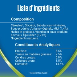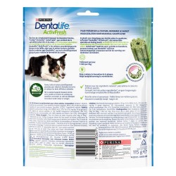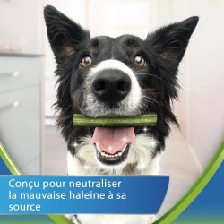 Parce que la mauvaise haleine de votre chien peut être le signe de problèmes bucco-dentaires graves, les experts Purina ont développé Purina® Dentalife® ActivFresh®. Les bâtonnets contiennent de la spiruline naturelle et du miel, pour aider à combattre la mauvaise haleine à sa source au lieu de simplement la masquer. Dentalife® ActivFresh® a les mêmes caractéristiques de forme et de taille, ainsi que la même texture alvéolée facile à mâcher que Dentalife®, qui est scientifiquement prouvé pour réduire la formation du tartre