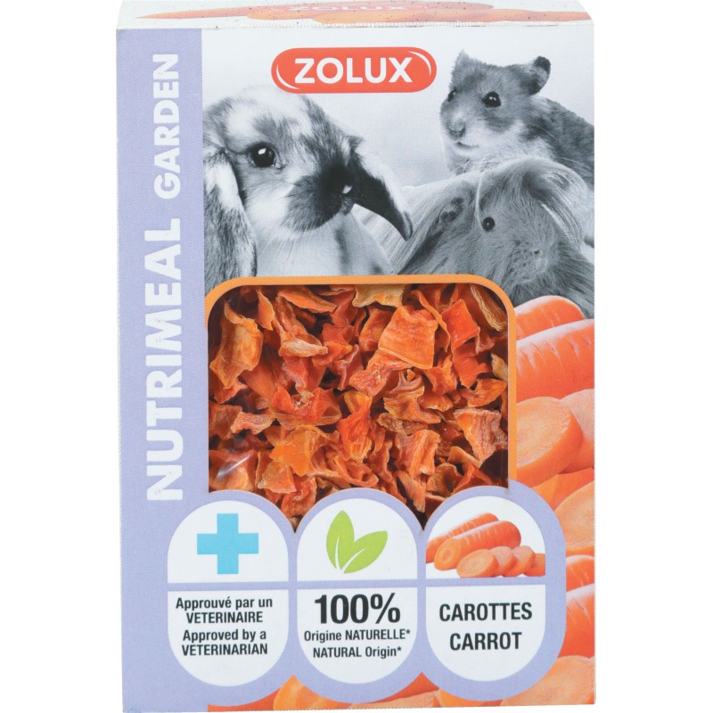 Nouvelle gamme de friandises NUTRIMEAL GARDEN pour petits mammifères: Snack à la carotte 40 g.