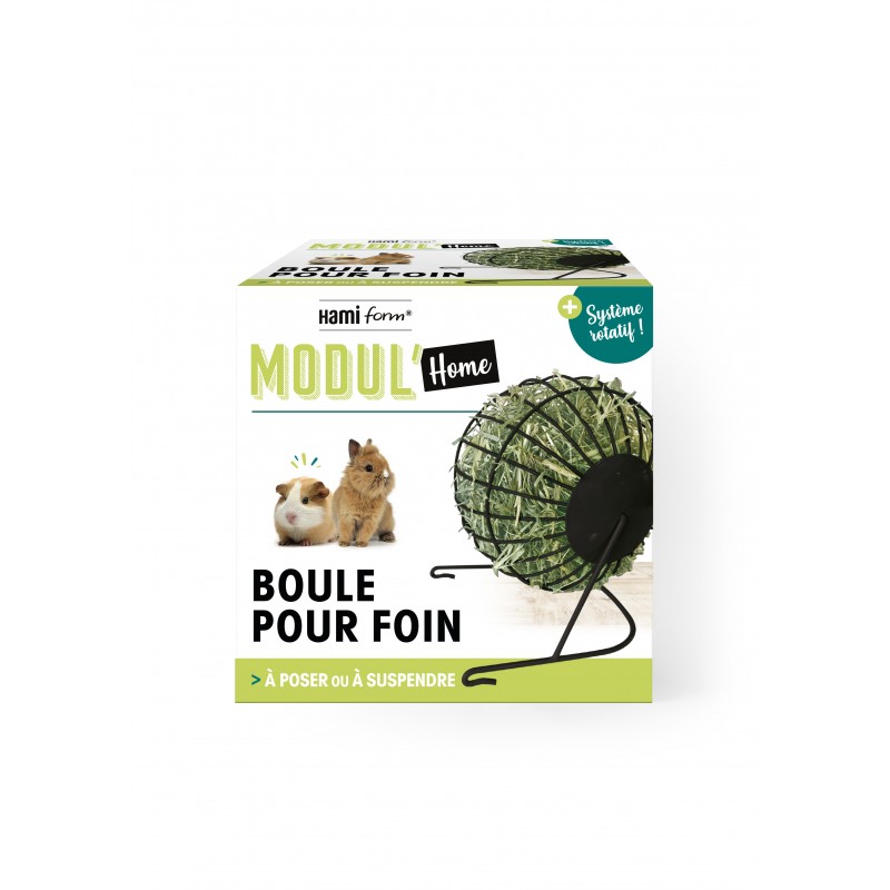 La boule à foin Modul'Home trouvera parfaitement sa place dans l'habitat de votre animal ! À suspendre avec ses attaches ou à poser, elle recevra avec facilité le foin que vous lui avez sélectionné. Avec son système rotatif, votre animal s'amusera durant de longs moments ! Diamètre 16 cm Système rotatif|