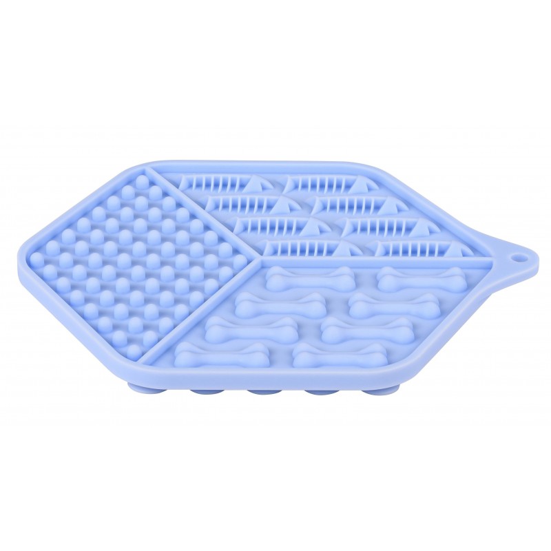 Mode d'emploi: étaler un stick Sweeties ou de l'alimentation humide sur le tapis puis le donner à l'animal.
