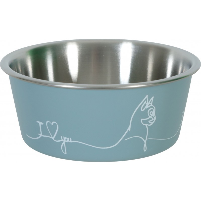 Nouvelle gamme d’ÉCUELLES LOVE pour chiens: Fabriquées en INOX, faciles d’entretien Coque en plastique au design travaillé Anti-dérapant en silicone orné d'un motif 'patte' Contenance: 400 mL Coloris: bleu Dimensions: L12,5 x p12,5 x h5,9 cm.|