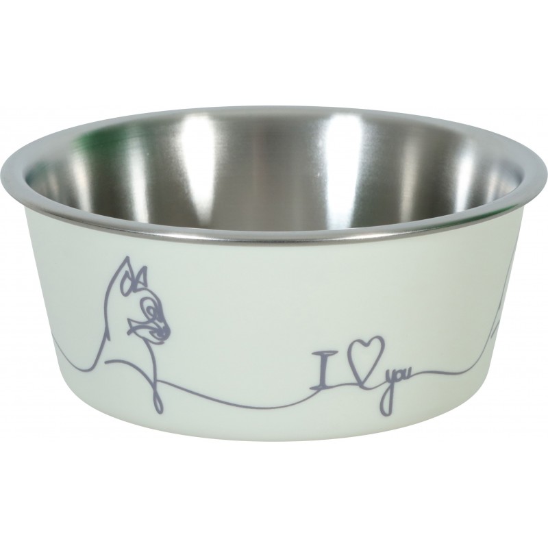 Nouvelle gamme d’ÉCUELLES LOVE pour chiens: Fabriquées en INOX, faciles d’entretien Coque en plastique au design travaillé Anti-dérapant en silicone orné d'un motif 'patte' Contenance: 400 mL Coloris: beige Dimensions: L12,5 x p12,5 x h5,9 cm.|
