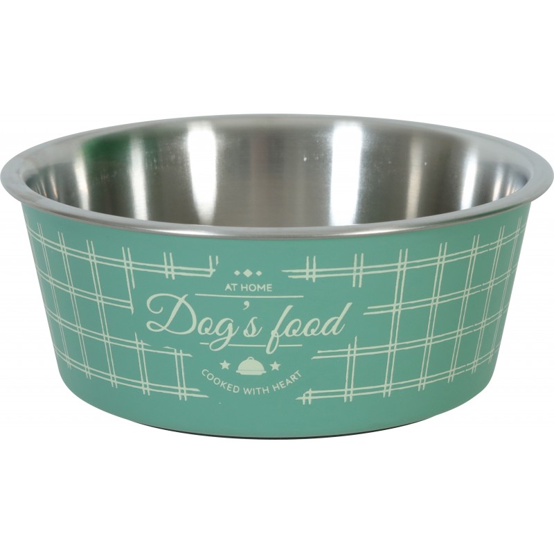 Nouvelle gamme d’ÉCUELLES FOOD pour chiens: Fabriquées en INOX, faciles d’entretien Coque en plastique au design travaillé Anti-dérapant en silicone orné d'un motif 'patte' Contenance: 1200 mL Coloris: vert. Dimensions: L17,8 x p17,8 x h7,1 cm.|