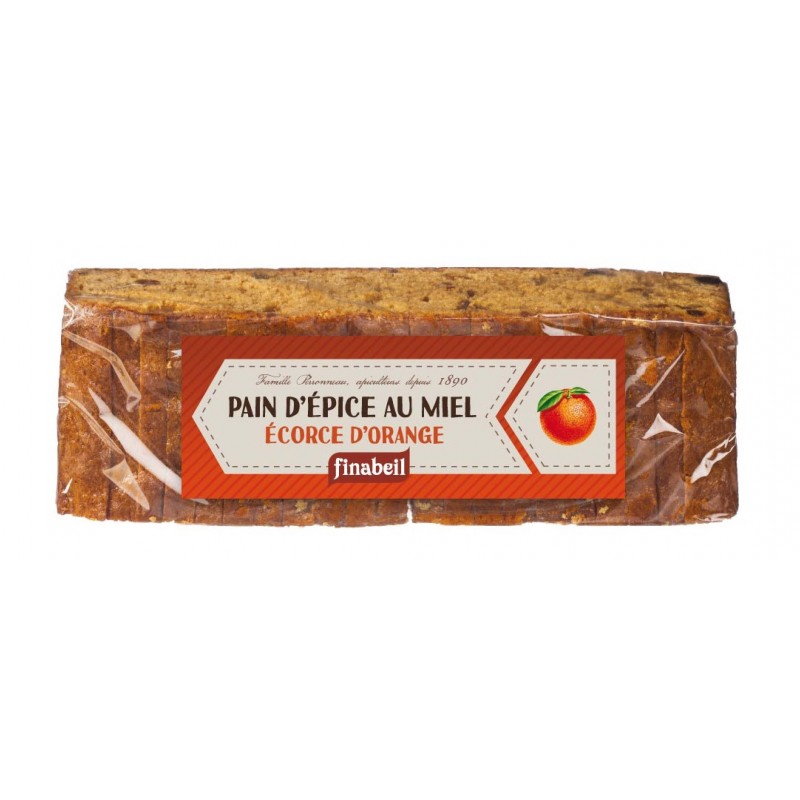 Farine de seigle, sirop de glucose-fructose, miel 25%, écorces d?orange confites 12% (écorces d?orange, sirop de glucose-fructose, sucre, régulateur d?acidité (acide citrique)), poudres à lever (carbonate acide de sodium, diphosphate disodique), arôme.