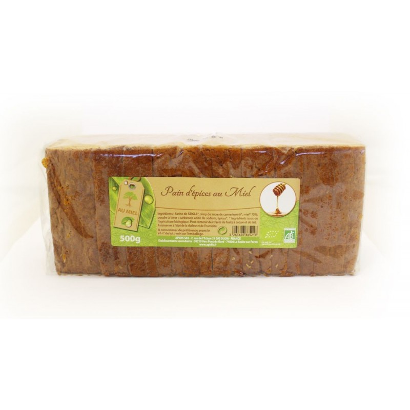 Farine de seigle(*), sirop de sucre de canne inverti(*), miel(*) 15 %, poudre à lever (carbonate acide de sodium), épices(*).(*) Ingrédients issus de l?agriculture biologique.