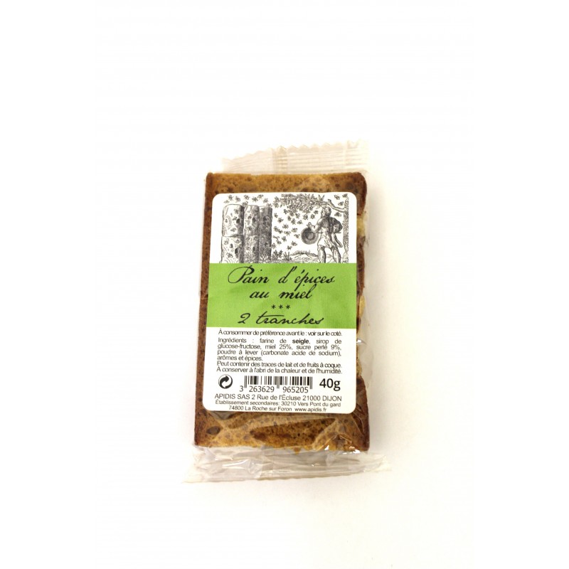 Farine de seigle, sirop de glucose-fructose, miel 25 %, sucre perlé 8 %, sucre, poudres à lever (carbonate acide de sodium, diphosphate disodique), épices.