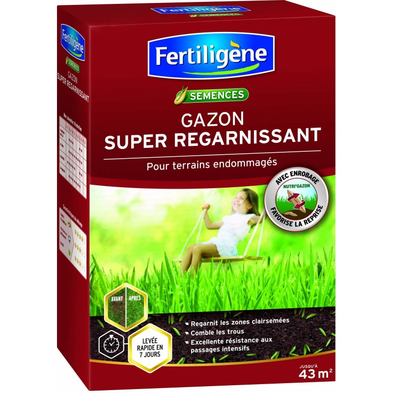 Son mélange unique stimule la germination pour combler les trous et regarnir les zones dégarnies. Composé d’engrais. pour nourrir le gazon déjà implanté et aider le nouveau à s’installer.