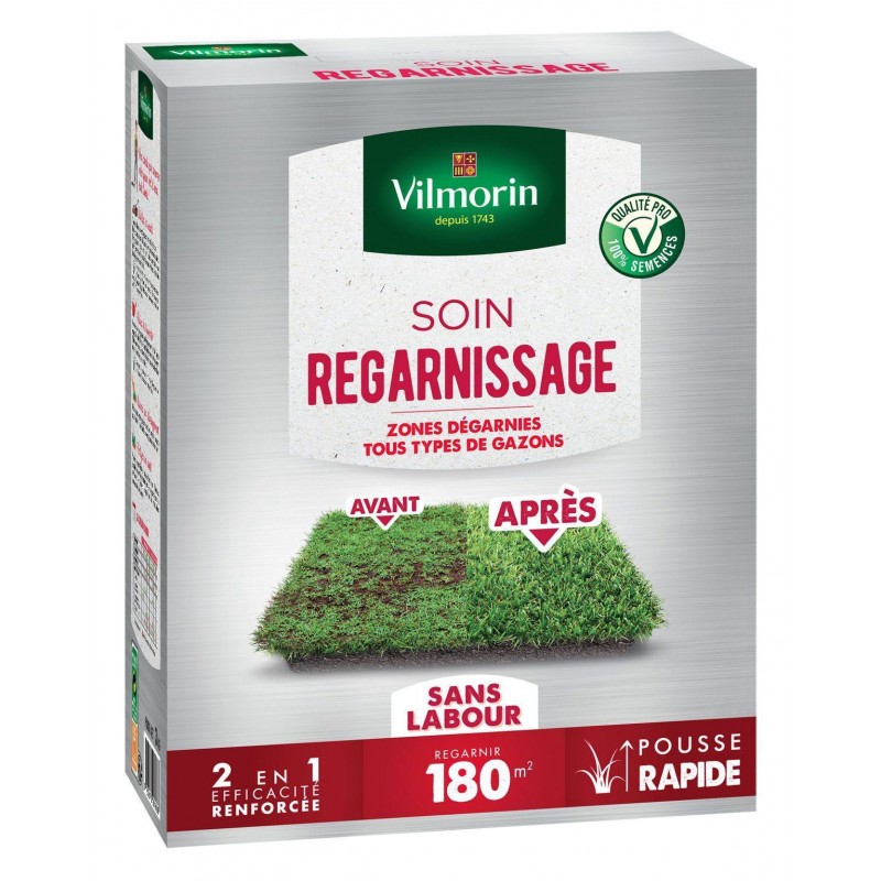 Le Soin Regarnissage Universel Express est un produit qui associe des semences de gazon à un fortifiant naturel qui favorise l'installation et la croissance du jeune gazon. Cela permet une rénovation facile et sans labour des zones dégarnies.|