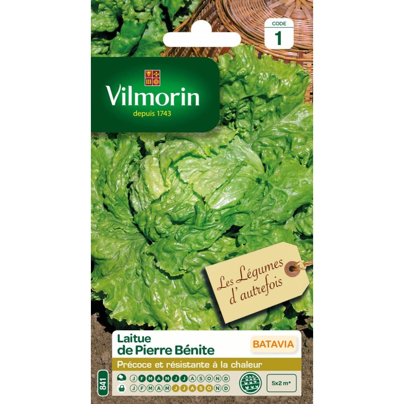 VILMORIN LES LÉGUMES D'AUTREFOIS-LAITUE BATAVIA De Pierre Bénite 5X2M SACHET 841 CODE 1