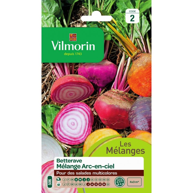Ce mélange original et coloré, composé de 4 variétés de betteraves (la rayée rouge et blanche Chioggia, la jaune Burpee's Golden, la rouge Détroit 2 et la blanche Albina Vereduna), sera du plus bel effet dans vos assiettes!|