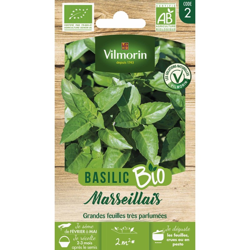 VILMORIN BASILIC BIO Marseillais Sachet 2M2 CODE 2