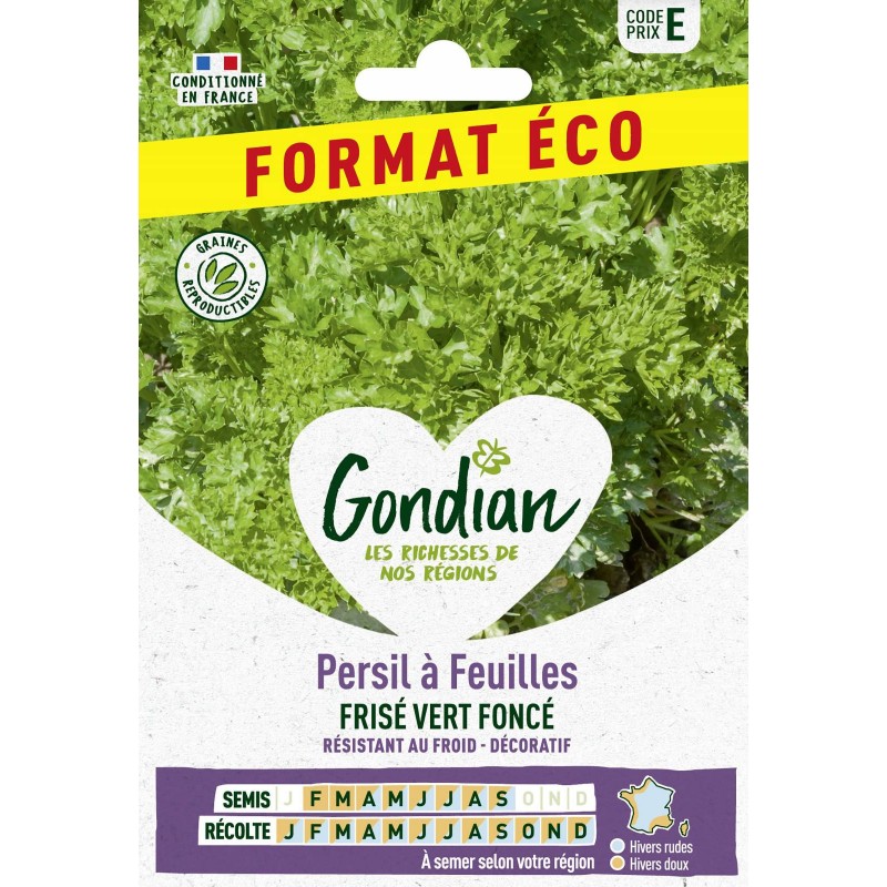 Ce persil est doté d'un feuillage profondément découpé. prenant un aspect très bouclé. d'un beau vert foncé. Il peut être aussi bien utilisé en condiment qu'en garniture et décoration de plat. Adapté à la culture en pot ou jardinière sur balcon ou terrasse. Le persil résiste au froid. mais craint le gel !|