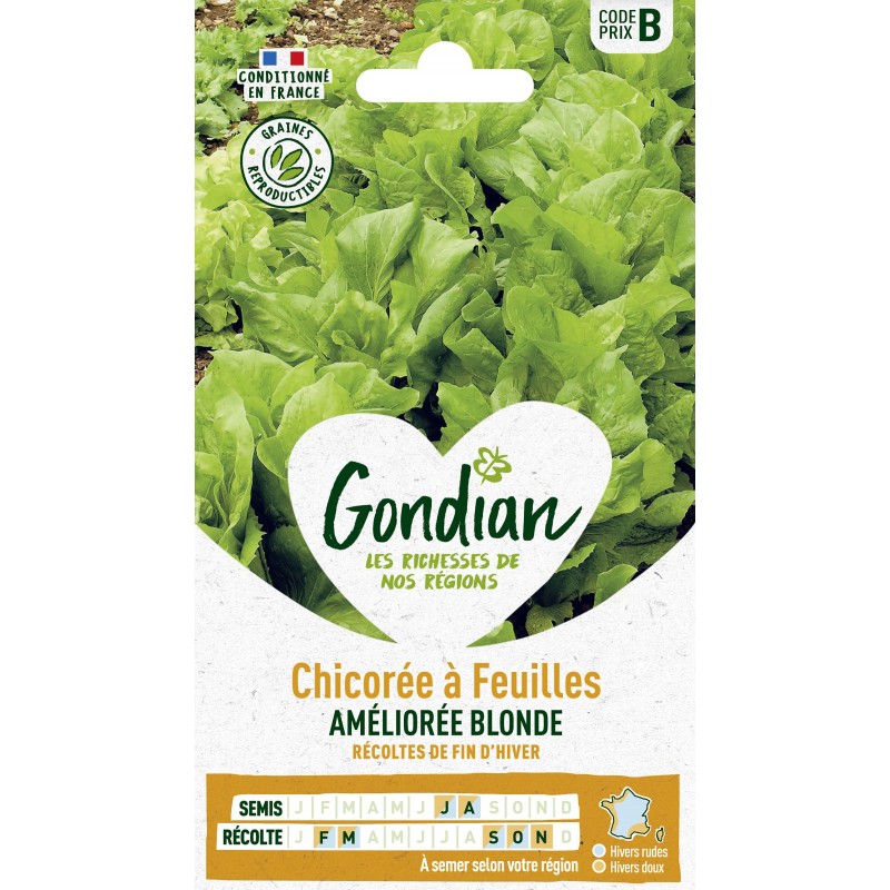 Cette variété d'hiver forme des pommes rappelant de petites laitues : ses feuilles sont arrondies. de couleur vert doré. et ont un goût très relevé et légèrement amer. L'Améliorée blonde est une chicorée sauvage améliorée. c'est-à-dire qu'elle a perdu de son amertume excessive. pour un goût plus agréable en bouche mais néanmoins très relevé. Utile. elle se récolte à une époque où il n'y a plus d'autre salade au potager.|