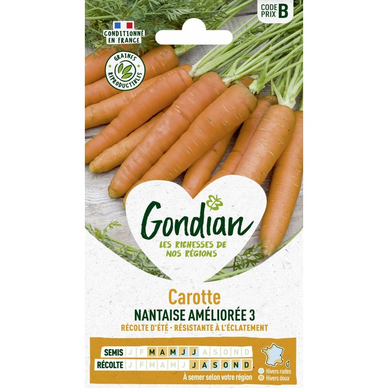 GONDIAN Carotte NANTAISE AMÉLIORÉE 3 Sachet CODE PRIX B