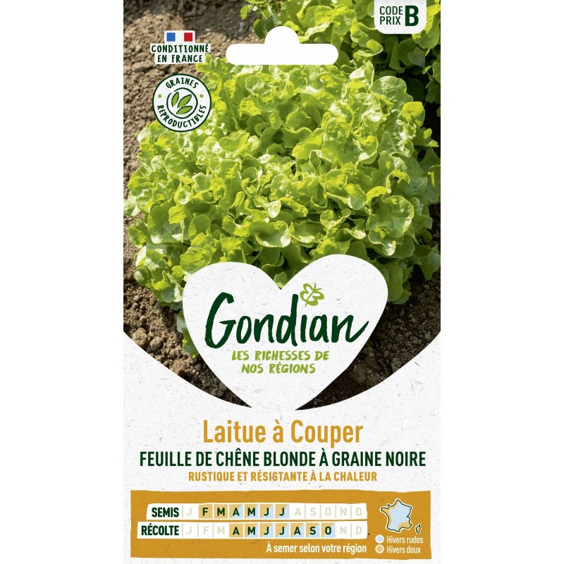 GONDIAN Laitue à Couper FEUILLE DE CHÊNE BLONDE À GRAINE NOIRE Sachet CODE PRIX B