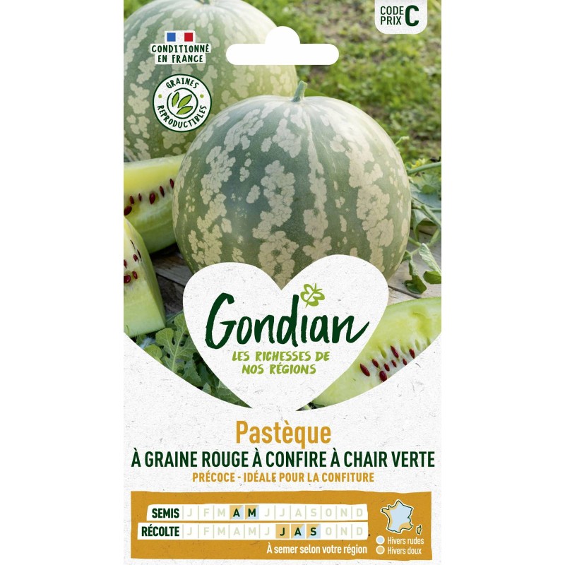 GONDIAN Pastèque à graine rouge À CONFIRE À CHAIR VERTE Sachet CODE PRIX C