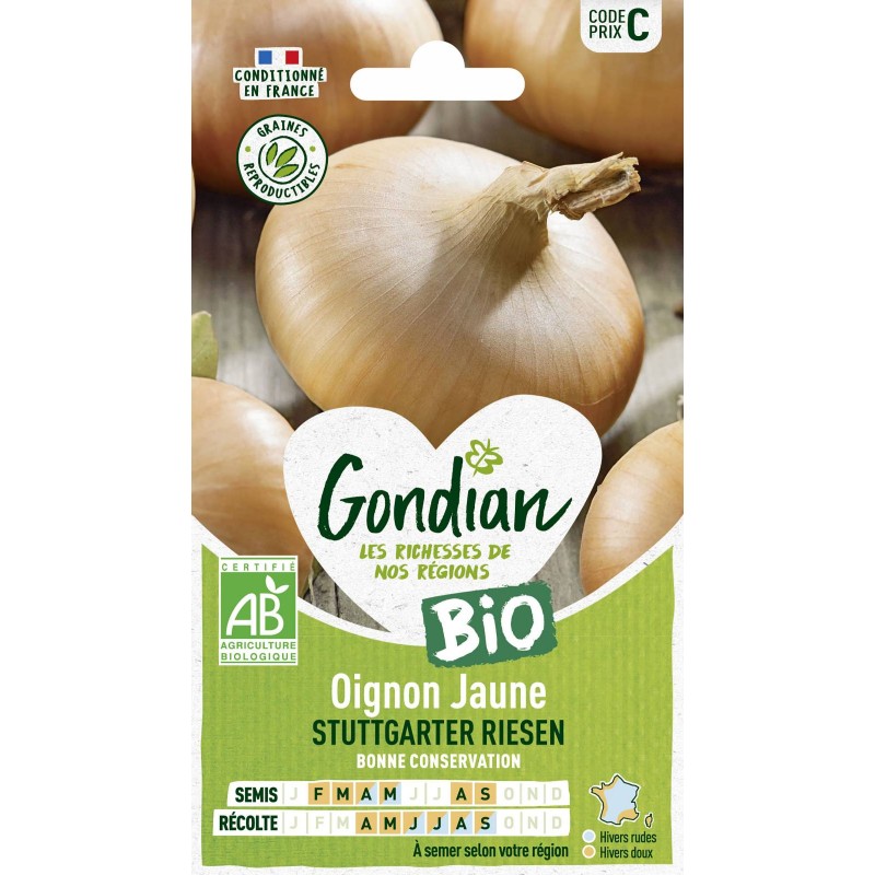 GONDIAN BIO-Oignon Jaune STUTTGARTER RIESEN Sachet CODE PRIX C