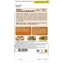 Cette variété hybride, au port très compact, est peu sensible aux maladies et résiste bien à la chaleur ainsi qu'au manque d'eau. Elle offre de beaux fruits à l'aspect légèrement aplati, à la saveur sucrée rappelant la purée de châtaigne. Se conservant très bien, les potimarrons vous permettront de réaliser de délicieux potages tout au long de l'hiver.|